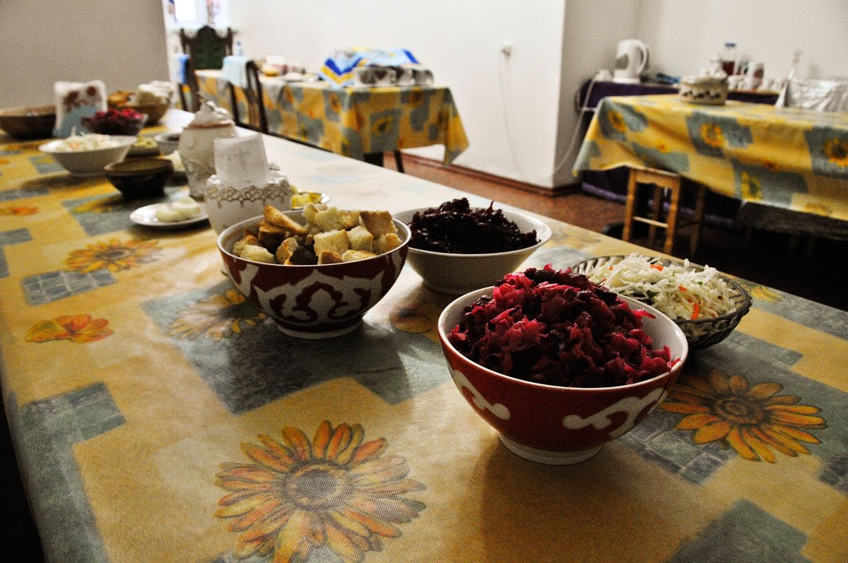 — Вся постная еда очень проста. Варим борщи и супы — без бульона, просто на воде. На второе — каши, заправленные обжаренным луком и морковкой или грибным соусом. На столе обязательно стоят салаты из квашеной или свежей капусты, винегрет, соленые огурцы. Готовим салат из тушеной свеклы с чесноком, корейским соусом и постным маслом, он обычно всем нравится, даже тем, кто свеклу не любит.