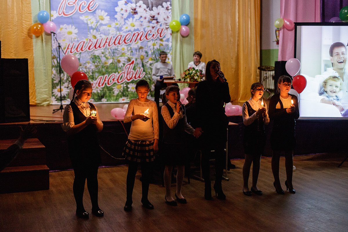За трогательными объятиями, поцелуем и танцем молодоженов со стажем следили из зала десятки детских глаз. Для них эта сцена больше походила на театральную постановку. С такими нежными чувствами большинство детей из неблагополучных семей не были знакомы.