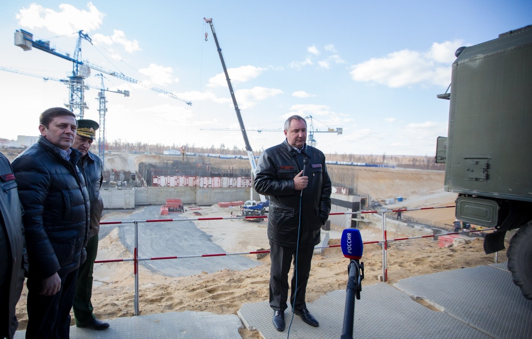 — Это стартовый комплекс номер один. К лету строители выведут его на «нулевой» уровень, — отрапортовал главный куратор космодрома Дмитрий Рогозин, стоя с микрофоном в руке на краю большого котлована. — Могу отметить, что за последние месяцы отставание от графика строительства полностью ликвидировано, продолжается наращивание группировки строителей. В настоящее время на всех объектах космодрома занято более 6 тысяч человек. Летом их численность увеличится еще на три тысячи человек и достигнет 10 тысяч строителей.