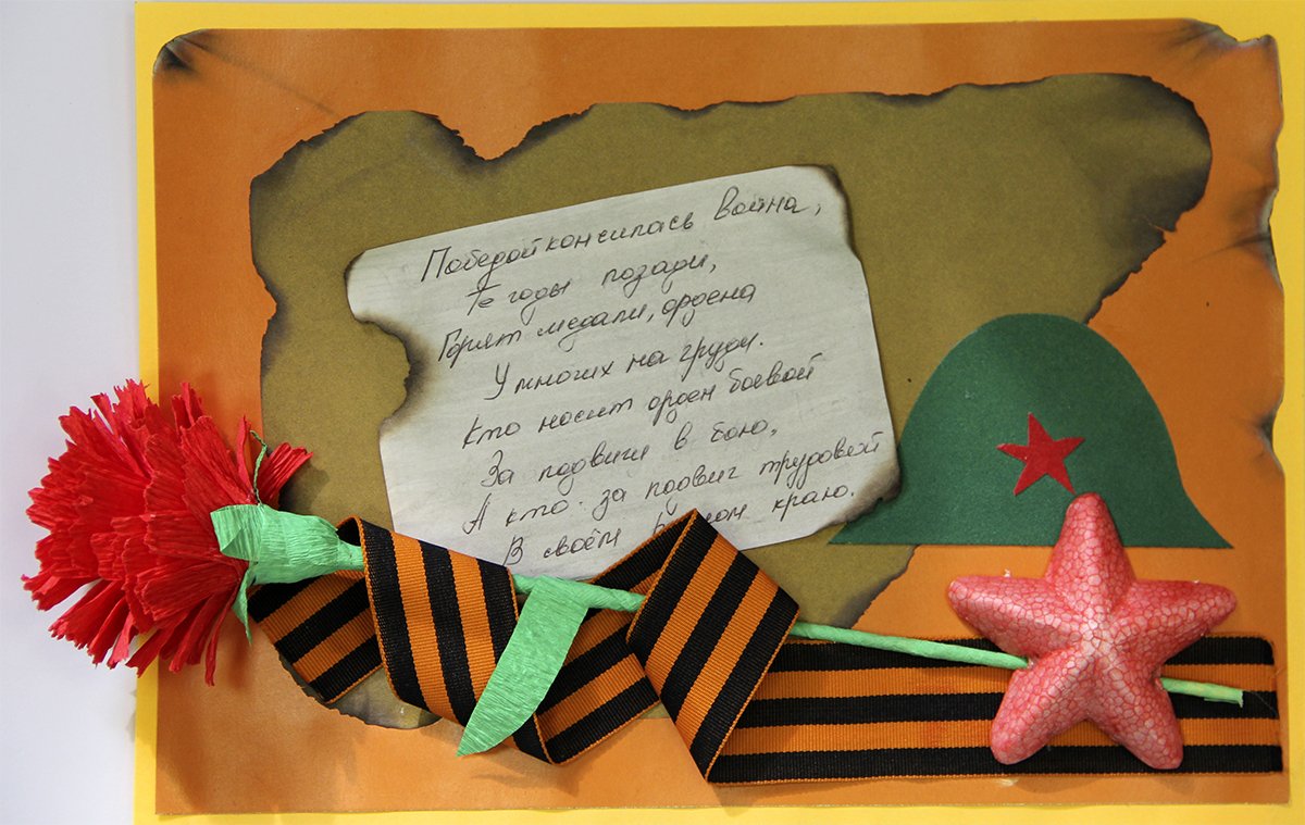 Дорогой ветеран! Я хочу сказать вам большое спасибо за победу. За то что вы уничтожили фашистов. Если бы вы этого не сделали, не было бы меня, моей семьи — мамы и папы. Этот поступок я буду помнить всю жизнь.Спасибо вам за спасение нашей страны!