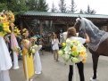 ОбществоВ амурской столице сегодня торжественно поженили лошадей. На этой необычной свадьбе было все как у людей: украшенная арка, кольца, фата, подвязка, смокинг, свадебный торт, свидетели и даже первый супружеский танец. Выездная регистрация Севера и Эскады прошла на базе отдыха «Золотой дракон». Торжество в честь года Лошади провели мастера по свадьбам и работники журнала «Совет да любовь» совместно с конноспортивным клубом «Аллюр». На необычной регистрации побывала журналист АП Арина Шевченко.