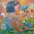Художница рисует с помощью разных материалов: гуаши, акриловых красок, мелков, фломастеров. Любимой у Анны является картина «Море в голове», ведь поехать отдохнуть в этим летом не получается — дома затеян ремонт.