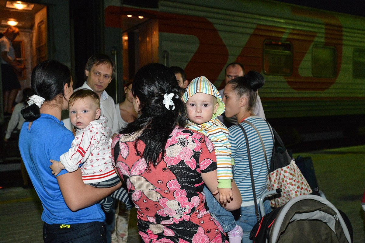 Всего в поезде Адлер — Благовещенск в Амурскую область приехал 21 украинец. Одна женщина сошла в Сковородине к сыну, пятеро прибыли в Мазановский район, а 15 — в Благовещенск. По данным УФМС на июнь 2014 года, в Приамурье зарегистрировано 1 300 украинцев, что на 850 человек больше, чем на эту же дату 2013 года. 90 украинцев уже подали документы на разрешение временного пребывания, 40 заявлений уже удовлетворено.