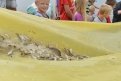 ОбществоВ Белоярове Мазановского района вчера выпустили в реку Зею мальков сазана и калуги. Прежде чем отправить их во взрослую жизнь, сотрудники Хб ТИНРО-Центра на несколько часов поместили мальков в специальный бассейн — чтобы потомство краснокнижной рыбы активизировалось после транспортировки из Хабаровского края. В течение пяти лет специалисты будут следить за развитием мальков калуги. Сейчас они весят до 50 граммов, через год средний вес составит 180 граммов, а 10 килограммов рыба достигнет лишь через 14 лет. Какое она произведет потомство, можно будет узнать спустя 40 лет. За тем, как Зея пополнилась новой краснокнижной рыбой, проследил фотокорреспондент АП Андрей Оглезнев.