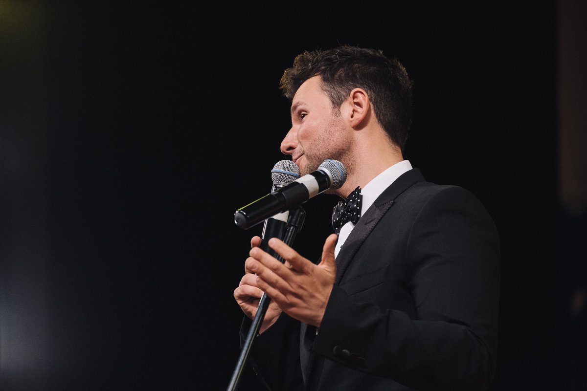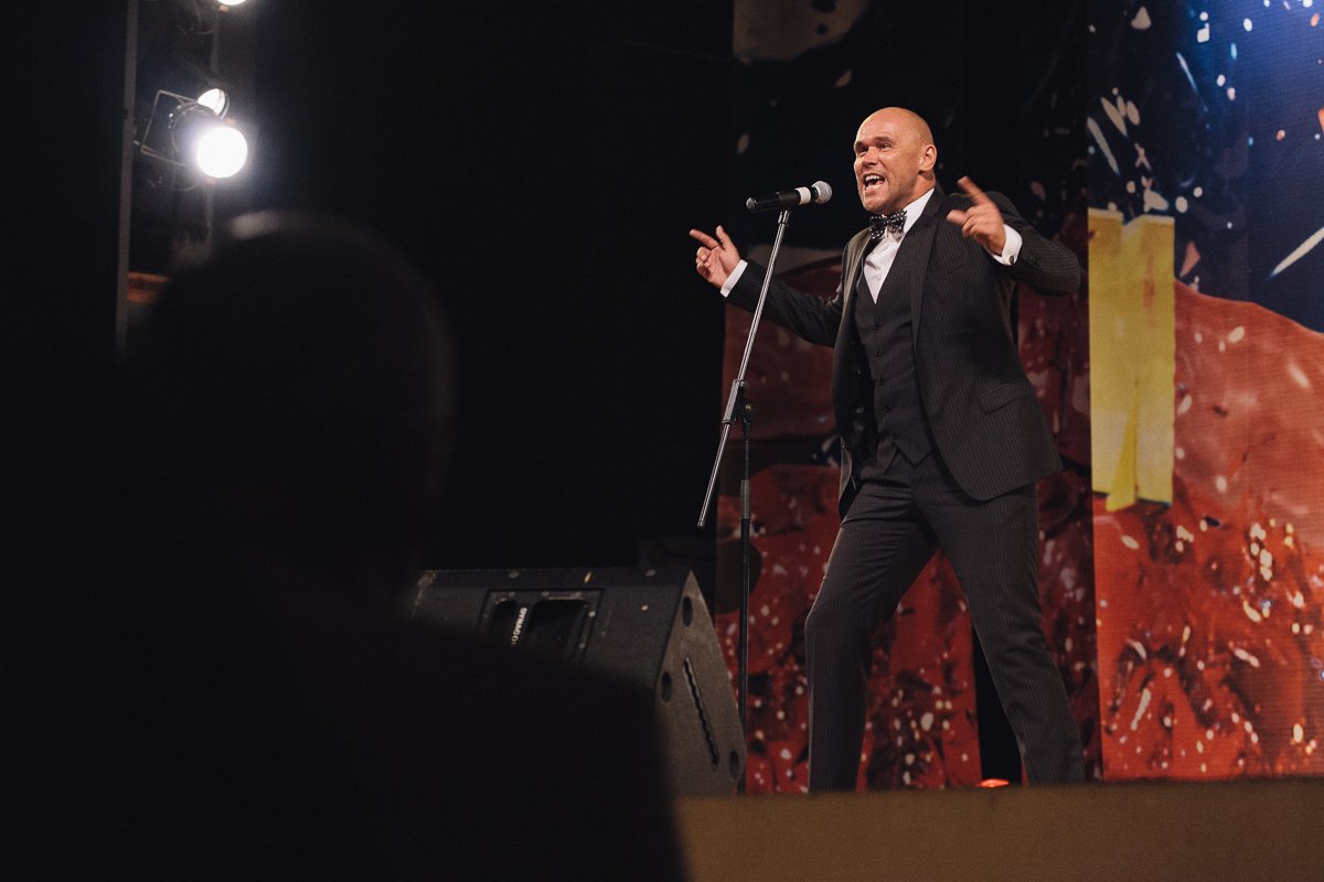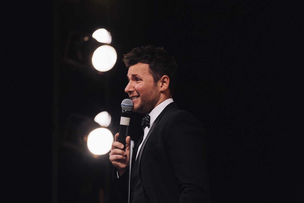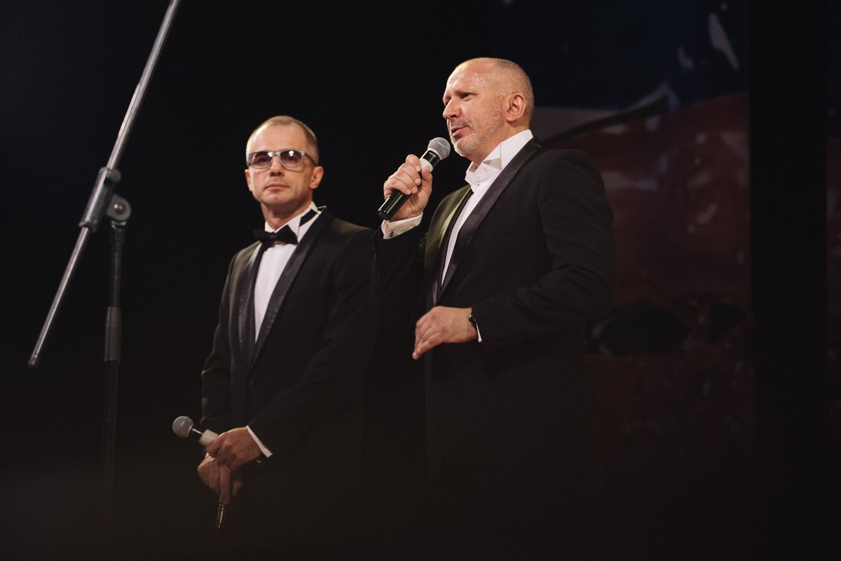 Открыл шоу заслуженный артист России Максим Аверин. Он сделал несколько грациозных оборотов вокруг стойки с микрофоном, поприветствовал собравшихся зрителей и исполнил зажигательную песню. Следом на сцену вышли главные устроители фестиваля — его президент Сергей Новожилов и оправившийся от прошлогодней травмы генеральный продюсер Антон Калюжный. Они поблагодарили всех партнеров и спонсоров традиционного культурного мероприятия.