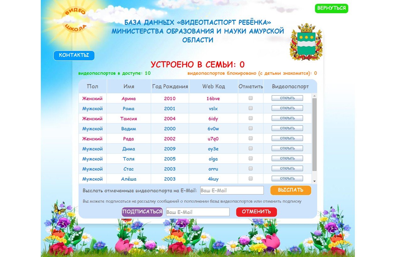 Потенциальные усыновители со всех регионов России могут познакомиться с ребятами в специальном разделе «Амурская область», посмотреть фотографии, узнать об их успехах, здоровье и особенностях характера. На сайте выложено видеодосье на 10 амурских детей в возрасте от 4 до 14 лет: это и разговоры с ребятами, и комментарии педагогов. Кроме того, здесь можно увидеть, как маленькие герои сюжетов занимаются в школе, проводят свой день и чем увлекаются.