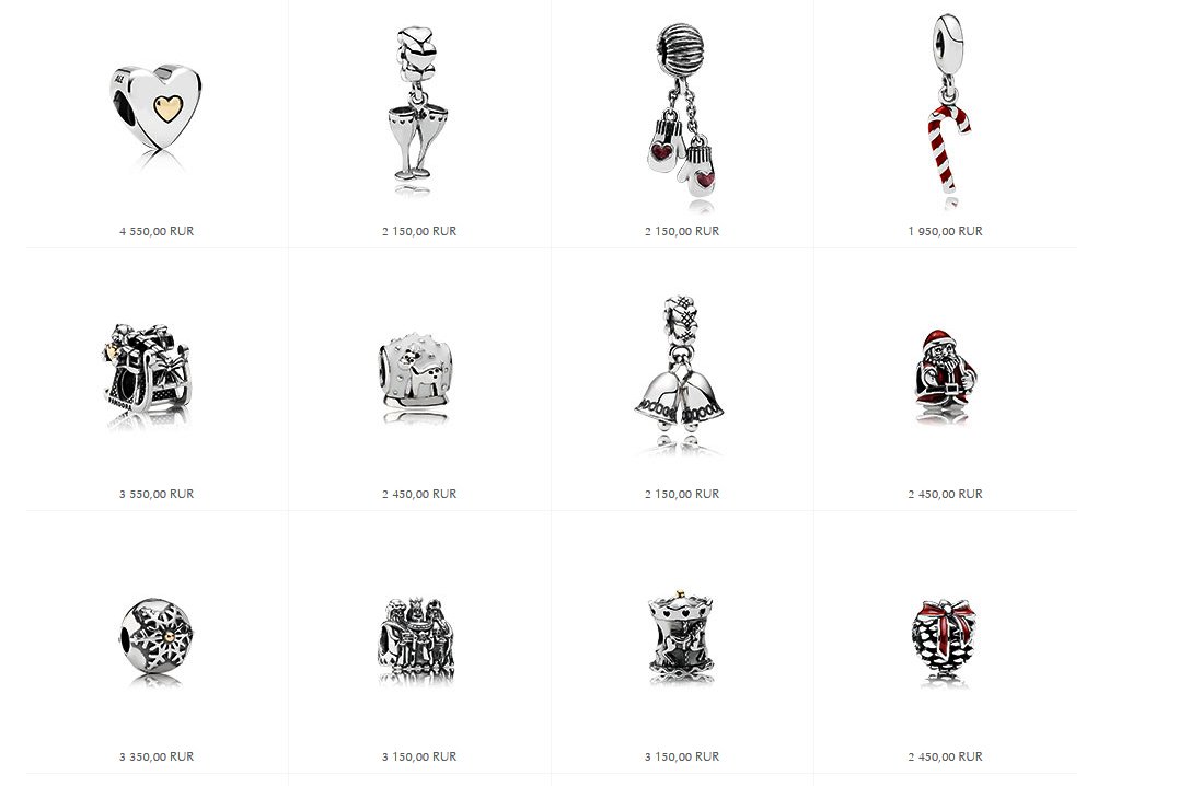 Для начала придется купить браслетик. Самый дешевый (читать «самый непривлекательный») стоит 1 190 рублей, и сделан он в технике макраме. Самый дорогой ― из золота 585-й пробы ― 69 950 отечественных денег. Еще есть из серебра и кожи. Цены разные, но самые симпатичные браслеты стоят не дешевле 3 000 руб. Шармы — от 750 до 35 900 за штучку, новогодней тематики — до 2 450 рублей. В общем, подвески Pandora могут себе позволить люди с достатком выше среднего.