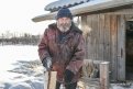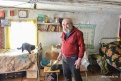 Во дворе радостно виляет хвостом собака. С мороза да в натопленную избу. «Дайте я хоть причешусь. Столько людей сразу в гости, даже неловко», — улыбается бородатый хозяин. В избе на удивление чисто. На кровати, придвинутой к печи, греются три кошки.
