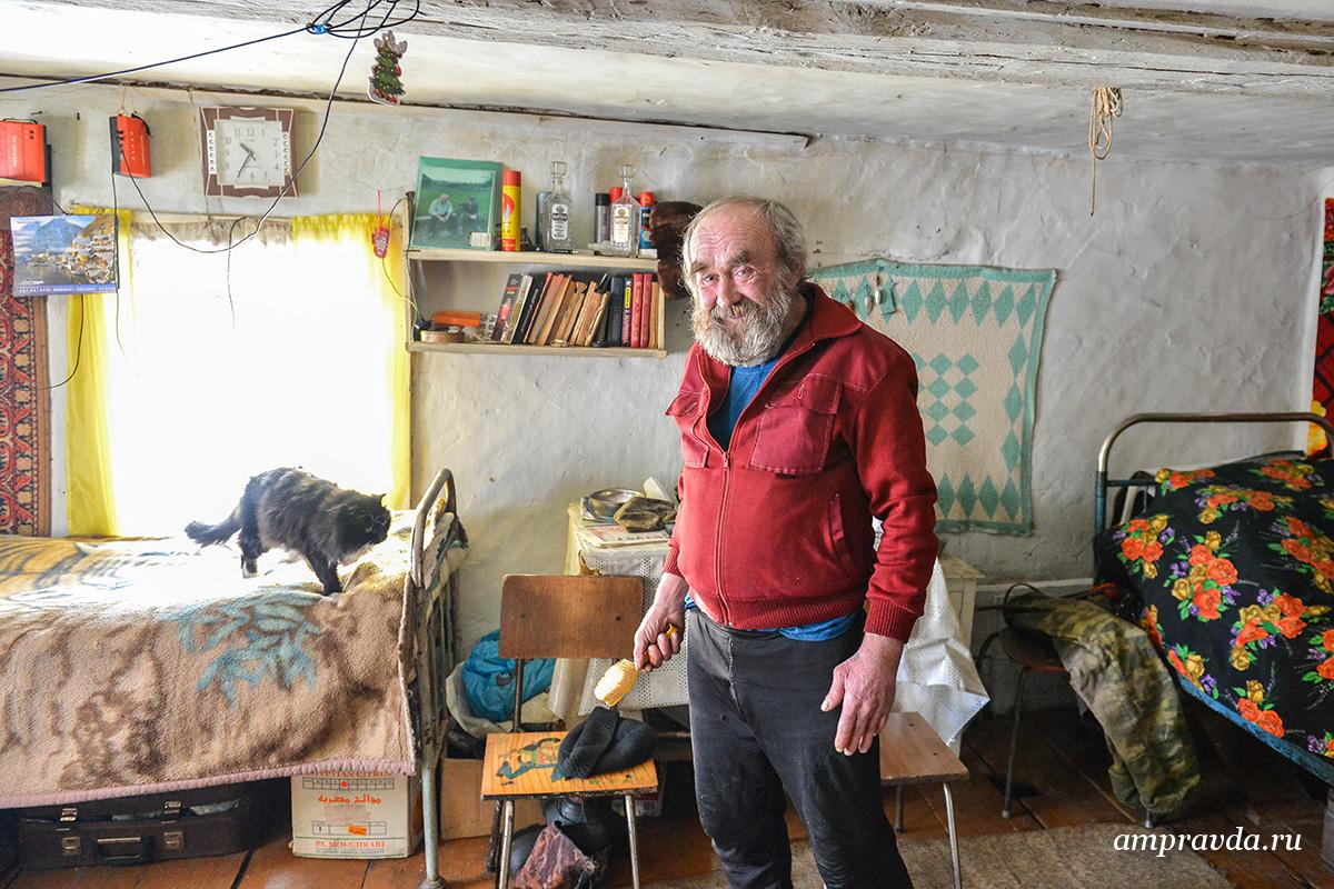 — Как я докатился до жизни такой, — продолжает Митрич. — Сам не знаю. Жил в Архаре, вышел на пенсию. Потом жена умерла, дети выросли и разлетелись из родного гнезда. Дочь давно в Омске, сын — во Владивостоке. Так получилось, что жить мне стало негде. К детям податься?! Не больно-то я там нужен. Да и зачем их своим присутствием обременять. Я еще в силе, могу и сам себя обслужить. Знакомый охотник, Коля Кравченко, предложил в Татакане пожить, его отчий дом охранять. Место хоть и дикое, но все равно пригляд нужен. Мало ли что. А здесь тишина и покой. Больше пенсионеру ничего и не надо.