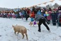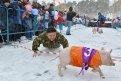 Общество«Борька, не отставай!», «Негр, вперед!» — скандировали сегодня в городском парке Белогорска. Масленицу здесь наряду с традиционными забавами: лазаньем по столбу, поеданием блинов и сожжением чучела зимы, отметили необычными забегами, а в качестве спринтеров выступили пять поросят. Упитанные и визжащие спортсмены боролись вместе со своими хозяевами за звание самой быстрой свинки и за главный приз — три мешка комбикорма. В итоге в финальном забеге первой ленточку пересекла свинья с политически некорректным именем Негр. «Имя такое из-за темной окраски», — объяснил владелец хрюшки-победительницы и пообещал, что после соревнований Негр получит праздничный ужин. За необычными масленичными состязаниями наблюдал корреспондент «Амурской правды» Андрей Ильинский. Видео стремительного забега визжащих конкурсантов смотрим здесь.