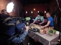 Вечер Дня защитника Отечества в лаунж-кафе Mystery проходил традиционно: за столиками ужинали, ни о чем не подозревая, посетители. Легкий интерес вызвали пришедшие люди с огромными чемоданами. Между тем в отдельном зальчике под светом софитов уже расположилась импровизированная кухня — здесь начались съемки кулинарного шоу «Поедем, поедим!» с Джоном Уорреном. Всю необходимую утварь и продукты предоставило заведение. Накануне программы была поймана и доставлена из Талакана «главная героиня» стола — щука. Съемочная группа привезла мобильную плиту, фирменные фартуки и тарелку. Кстати, кухонный стол по просьбе ведущего подняли на 20 сантиметров — чтобы за многочасовой процесс съемки не разболелась спина.