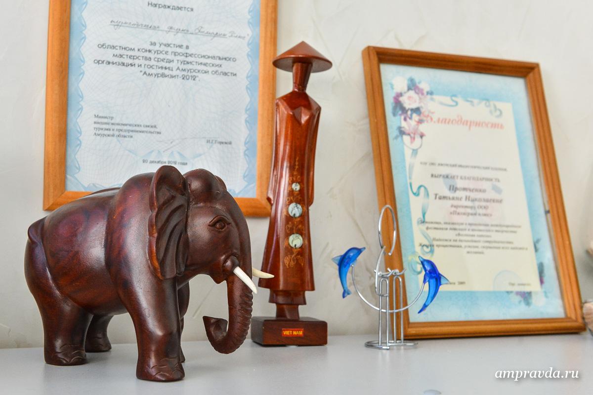 К сувенирам и небольшим подаркам у директора туристической фирмы самое трепетное отношение. Картинам, тарелочкам и прочим поделкам разных народов отдана целая стена. И это очередной знак благодарности от тех, кого приручили.