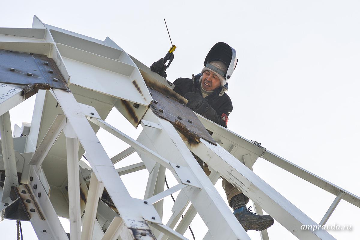 — Вот самое сложное, — показывая на первый ярус, говорит бригадир-монтажник Иван Максимчук, который работает больше 15 лет в энергетике. — Выше все будет легче и легче! Такую же градирню мы строили в Абакане на ТЭЦ, два месяца здесь уже. Будет красивая, как ваза.