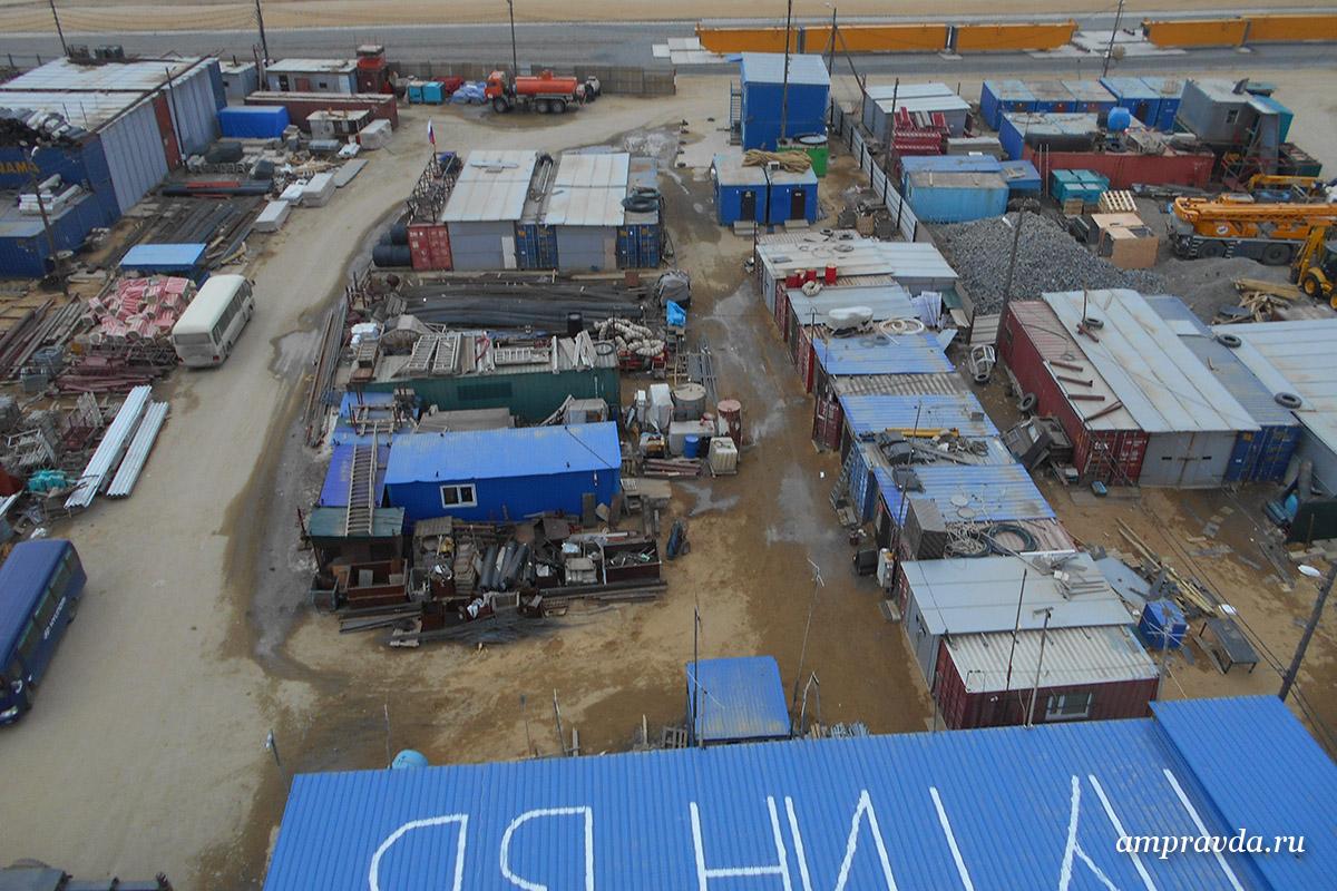 На сегодняшний день на стройке по-прежнему остаются 30 рабочих, которые охраняют вахтовый городок и строительную технику. Расстояние между охраняемыми объектами доходит до 30 километров.