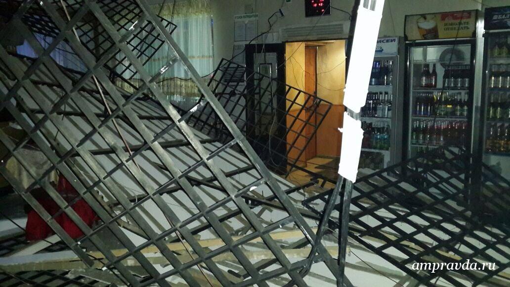 Cообщение о ЧП поступило в ЕДДС Зеи в 22.06, вызов на станции скорой помощи приняли в 22.05. Как рассказал дежурный ЕДДС города Зеи Александр Кульков, в кафе обвалилась подвесная конструкция, при этом основной потолок здания цел. По информации дежурного, упавший потолок нанес травмы 4 девушкам. «Серьезно пострадавших не было, — рассказал Александр Кульков. — В основном пострадавшие получили подкожные гематомы волосяной части головы, ушибы». К одной из женщин скорая приезжала дважды: после первого осмотра медиков у нее сильно разболелась голова. В итоге посетительницу кафе с подозрением на сотрясение головного мозга увезли на обследование в травматологию местной больницы.