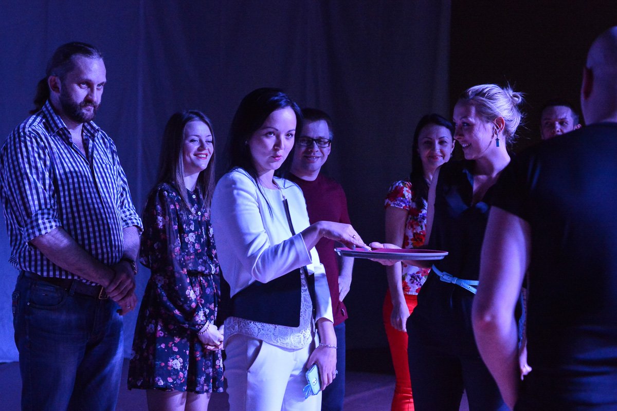 Первое задание оказалось не очень страшным — выйти на сцену и провести жеребьевку партнеров — профессиональных танцоров. В итоге мне достался самый симпатичный (но очень серьезный) танцор — Николай Тимохин. Посмотрев на меня, молодой человек попытался скрыть тяжелый вздох, немного вымученно улыбнулся и тихо произнес: «Будем работать… Много работать». И предложил на первое выступление, которое состоится в «Островах» уже 11 мая и будет посвящено 70-летию со дня Победы, исполнить… Хотя нет. Рассказывать заранее, что придумал серьезный Николай, нельзя. Кстати, мое предложение, чтобы враги меня убили в самом начале выступления, Николай Тимохин категорически отверг. Так что если вы не боитесь, то 11 мая обязательно приходите в «Острова»… Хотя бы поржать…