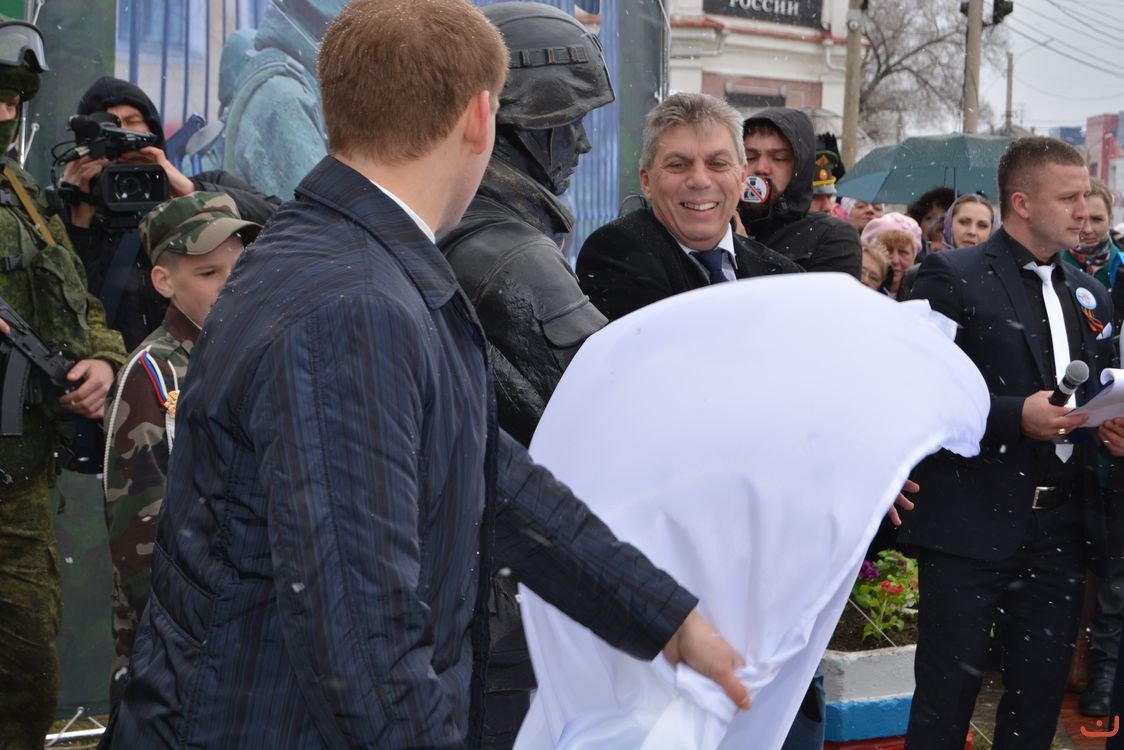 — В последнее время меня часто спрашивают: «А почему в Белогорске собственно? Мол, где Амурская область и где Крым?» Я в ответ говорю: «Так звезды сошлись», — отметил глава города Станислав Мелюков. — Сошлись, потому что, наверное, нужно было закончить Симферопольское военное училище, приехать служить на Дальний Восток в Белогорск, выйти здесь в запас, а потом руководить городом именно в то время, когда произошли эти знаменательные события в Крыму. И самое главное — желание сделать что-то и быть причастным, было здесь, внутри. А потом — дело за малым. От замысла до воплощения прошло всего три месяца. Каким получился памятник — судить не мне. Мнений много и мнений разных. Были призывы вообще не устанавливать его.... Но вот он здесь, пока накрытый, и, вы знаете, он уже стал историей. Потому что первый! Но я уверен, что их будет много. Повыше, пониже, с котенком и без него, с открытым лицом или с закрытым, в общем — других. Но будут обязательно! Потому что важно, чтобы мы, как помним, кто спас мир от фашизма 70 лет назад, также помнили, кто помогал вернуть Крым домой!