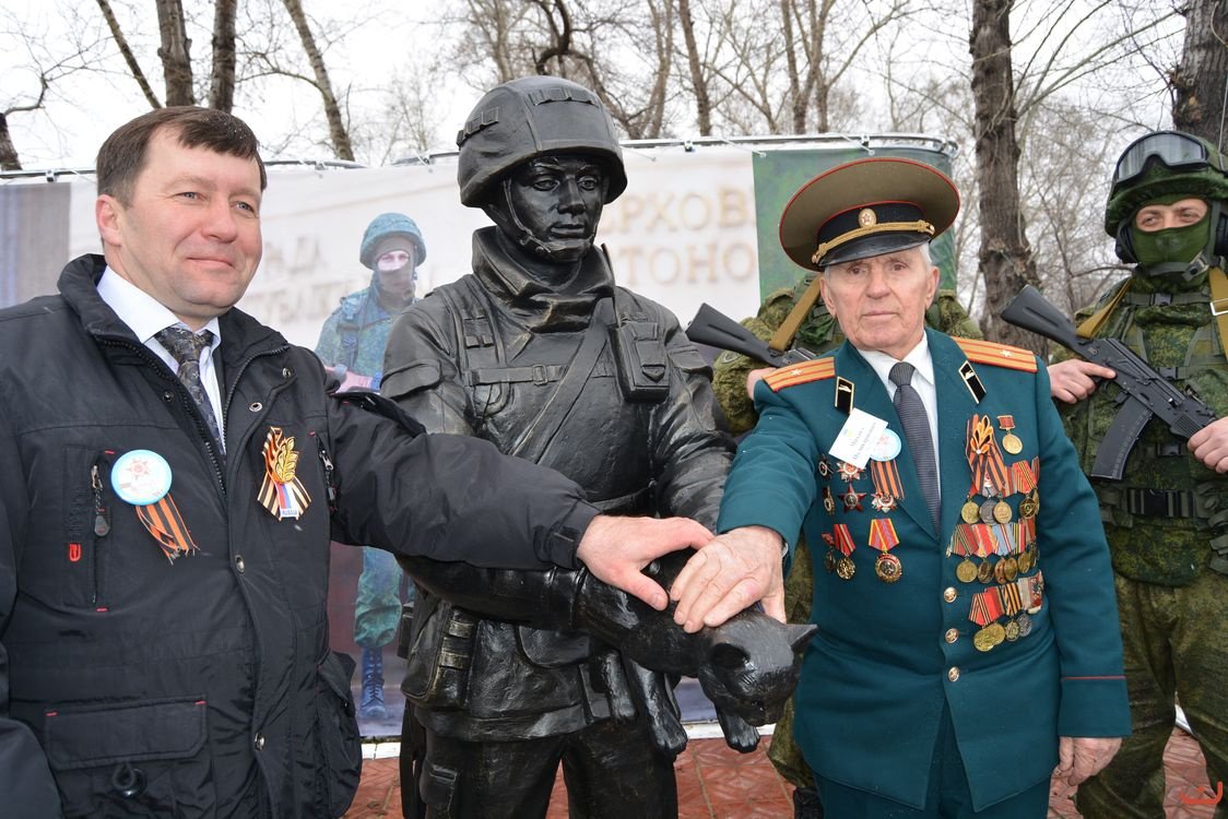 — Символично, что первый памятник Российскому солдату открыт именно в Белогорске, в городе 35-й Краснознаменной Армии, — отметил начальник инженерных войск 35-й Армии, полковник Олег Иванченко. — Белогорск — это один из городов, где, согласно приказу министра обороны России, в День Победы 9 Мая проводится ежегодный военный парад. Многое город связывает с армией. Открытие этой скульптуры в год 70-летия со Дня Победы в Великой Отечественной — это еще одна возможность отдать дань уважения людям, посвятившим всю свою жизнь делу защиты Отечества.
