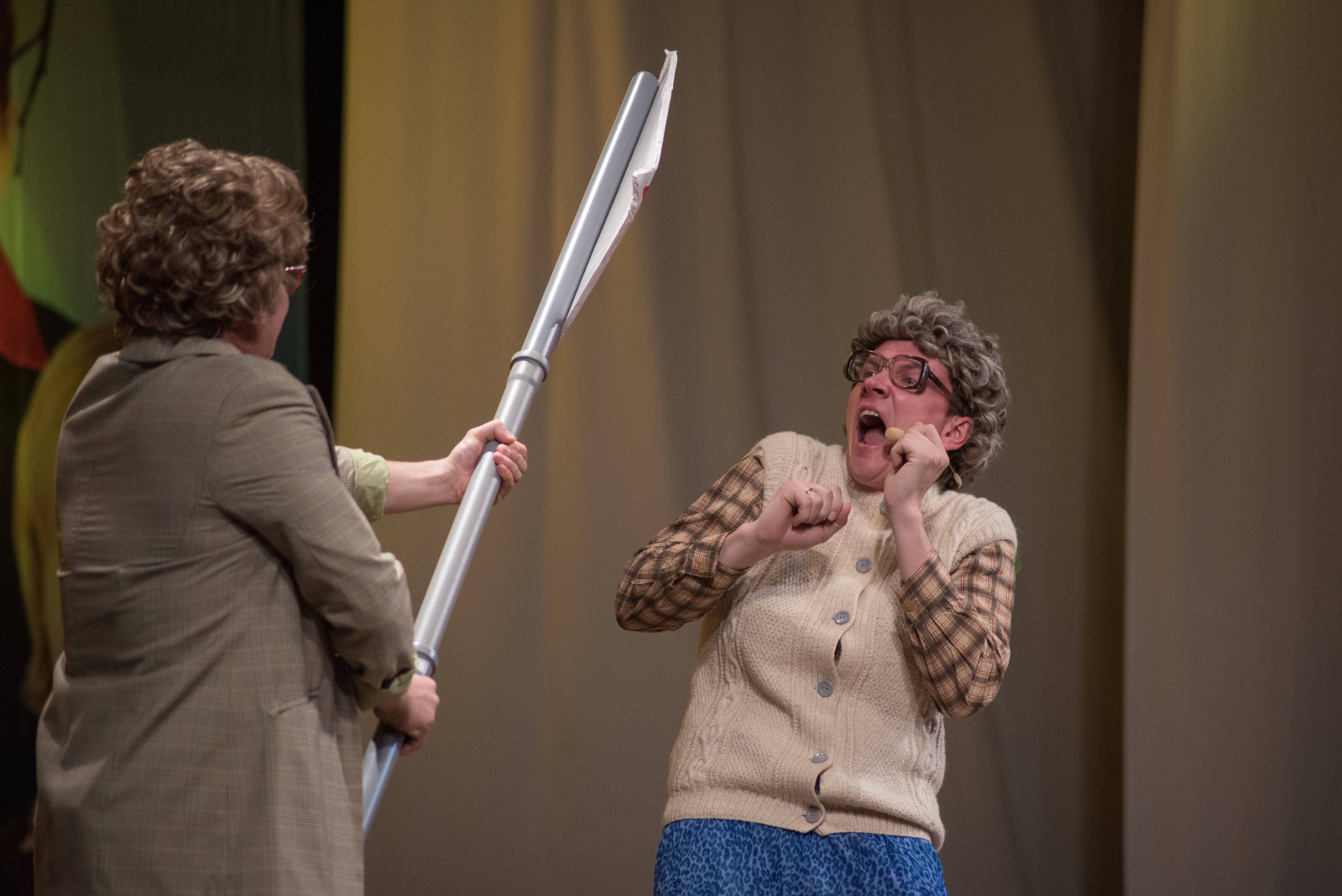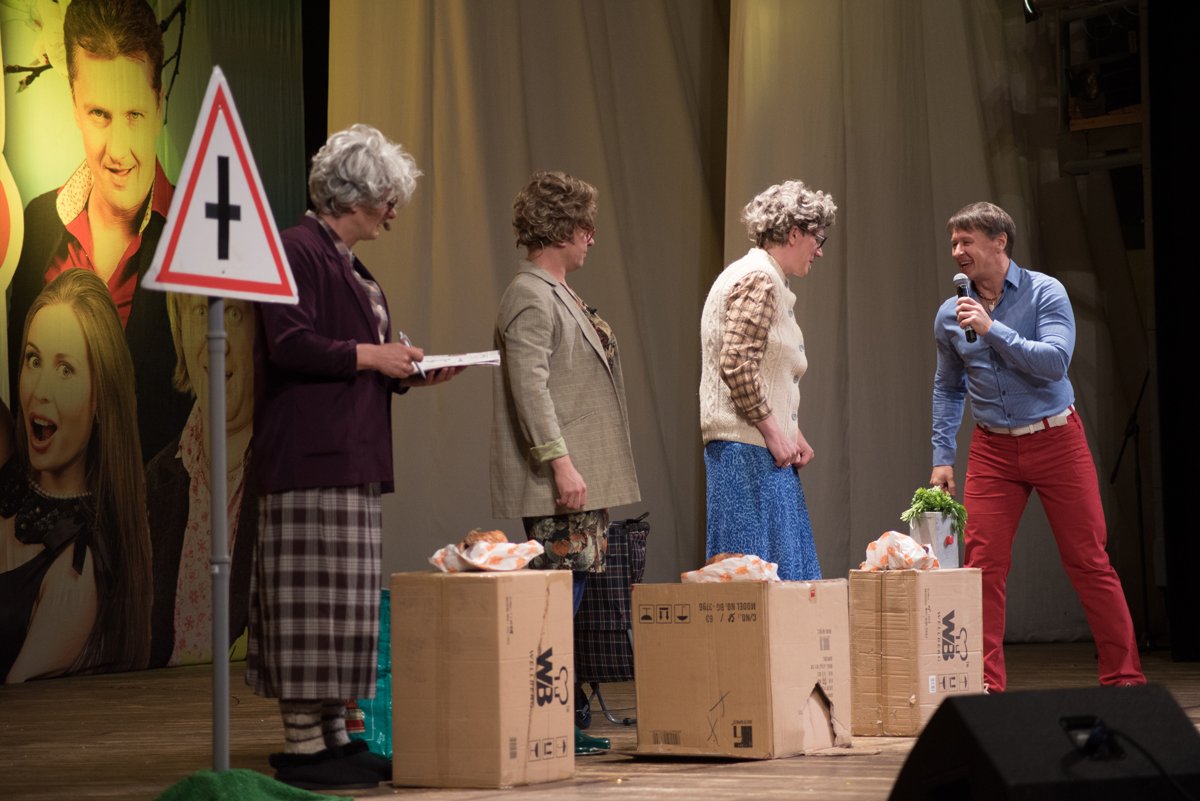 Количеству реквизита, использованного на сцене, могла бы позавидовать столичная театральная труппа: рояль, холодильник, раскладушки, диван, столы, туба, саксофон, барабан, кандалы и даже дорожные знаки. А юмористы так мастерски перевоплощались в своих героев, что их невозможно было узнать. Главный голос юмористического шоу Вячеслав Мясников спел под гитару любимые песни про кота, «Новый год — мандарин в рот» и трогательный хит про папу, параллельно организовав массовый сеанс селфи у сцены.