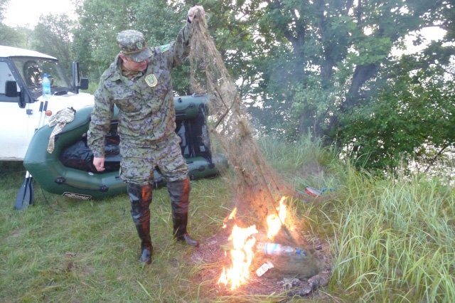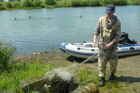 — Хотя задание на очистку водоемов меняется, ряд озер очищается ежегодно. Это излюбленные для отдыха и рыбалки места, например озеро Хомутина в Благовещенском районе, Козьмодемьяновское водохранилище в Тамбовском районе, озеро Большое Богородское в Ивановском районе, — рассказал ведущий охотовед Дмитрий Худолеев. — В этом месяце из них мы извлекли десятки брошенных сетей, кроме того, несколько брошенных переметов, вентерей, мордуш. В сетях много тухлой рыбы.