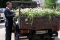 Сколько точно ушло цветов, Николай не считал, но говорит, что около тысячи. С вечера скошенную траву и цветы пришлось поливать из автомойки в гараже, чтобы они не завяли. И утром потом тоже оживлять растения. Борта грузового автомобиля жених тоже обклеил белыми ромашками из ватмана. Эта цветочная композиция на колесах, конечно, не могла не удивить невесту.