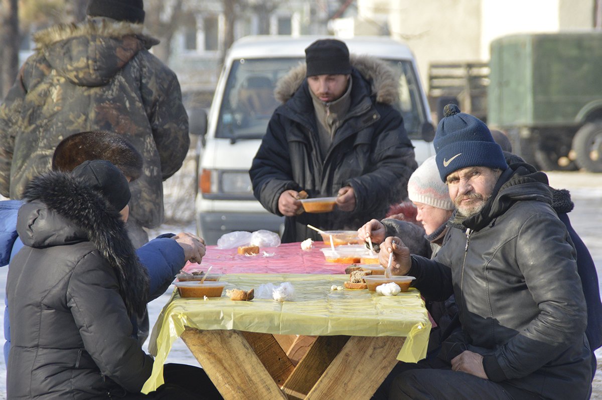 => Бездомных поставили на довольствие: добровольцы кормят благовещенских бродяг горячими обедами