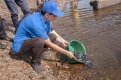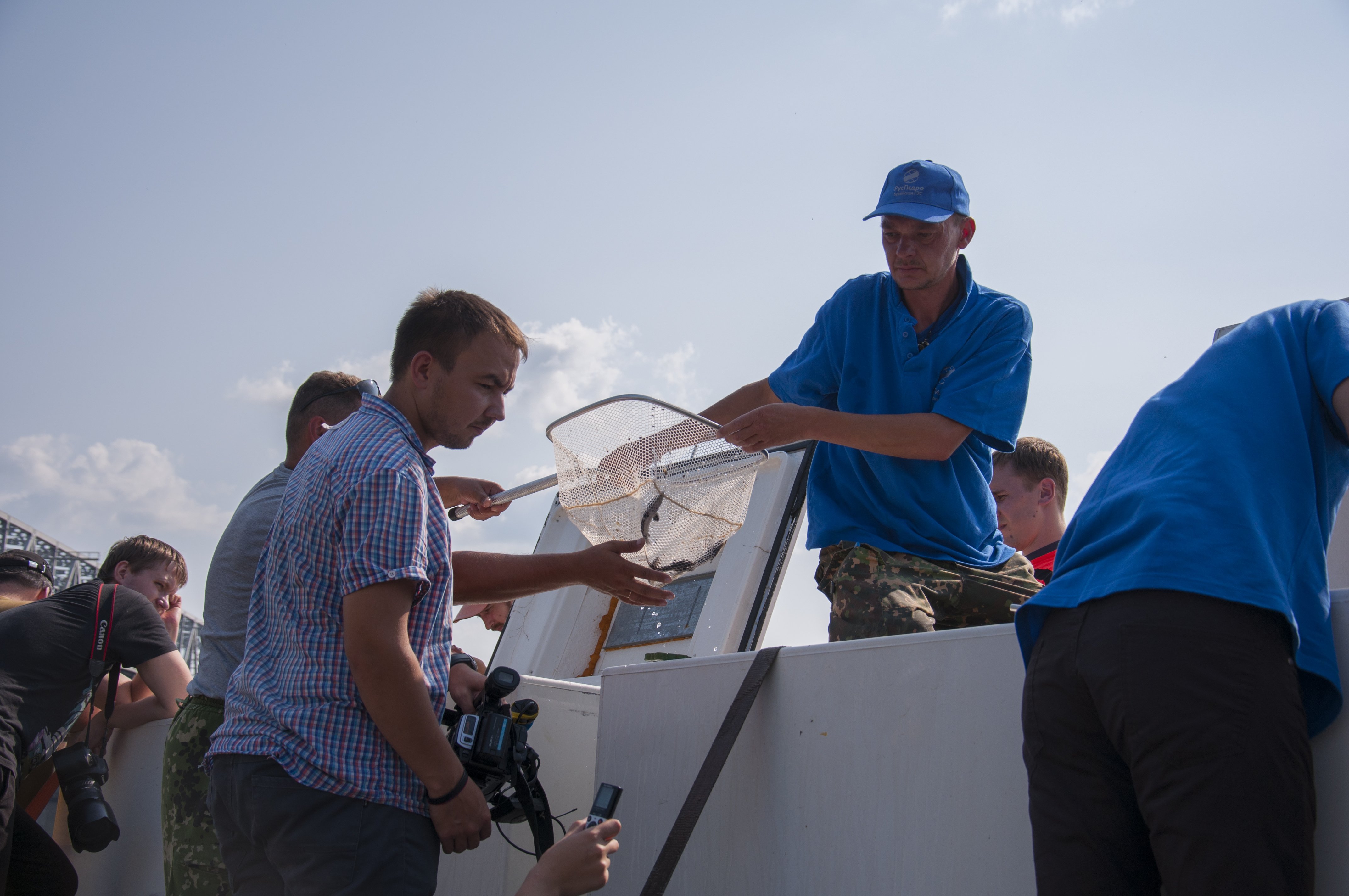 Самое главное при выпуске рыбы в новую среду — не должно быть больших температурных перепадов. Поэтому предварительно специалисты проводят замеры в реке — в этот раз температура воды в Зее почти не отличается от среды в контейнерах. Часть мальков перемещают в резервуар с речной водой, а затем с помощью сачков и обычных пластиковых тазов отправляют в первое большое плавание. Принять участие в выпуске мальков разрешили всем желающим. Рыбоводам даже не пришлось просить волонтеров о помощи — за возможность выпустить в реку амурского осетра, а заодно и подержать рыбу в руках выстроилась очередь из прибывших на это мероприятие сотрудников «РусГидро» и журналистов. Не устоял и замдиректора Бурейской ГЭС Владимир Горшенин. «В следующем году надо больше выпускать», — заключил, выходя из воды, Владимир Егорович.