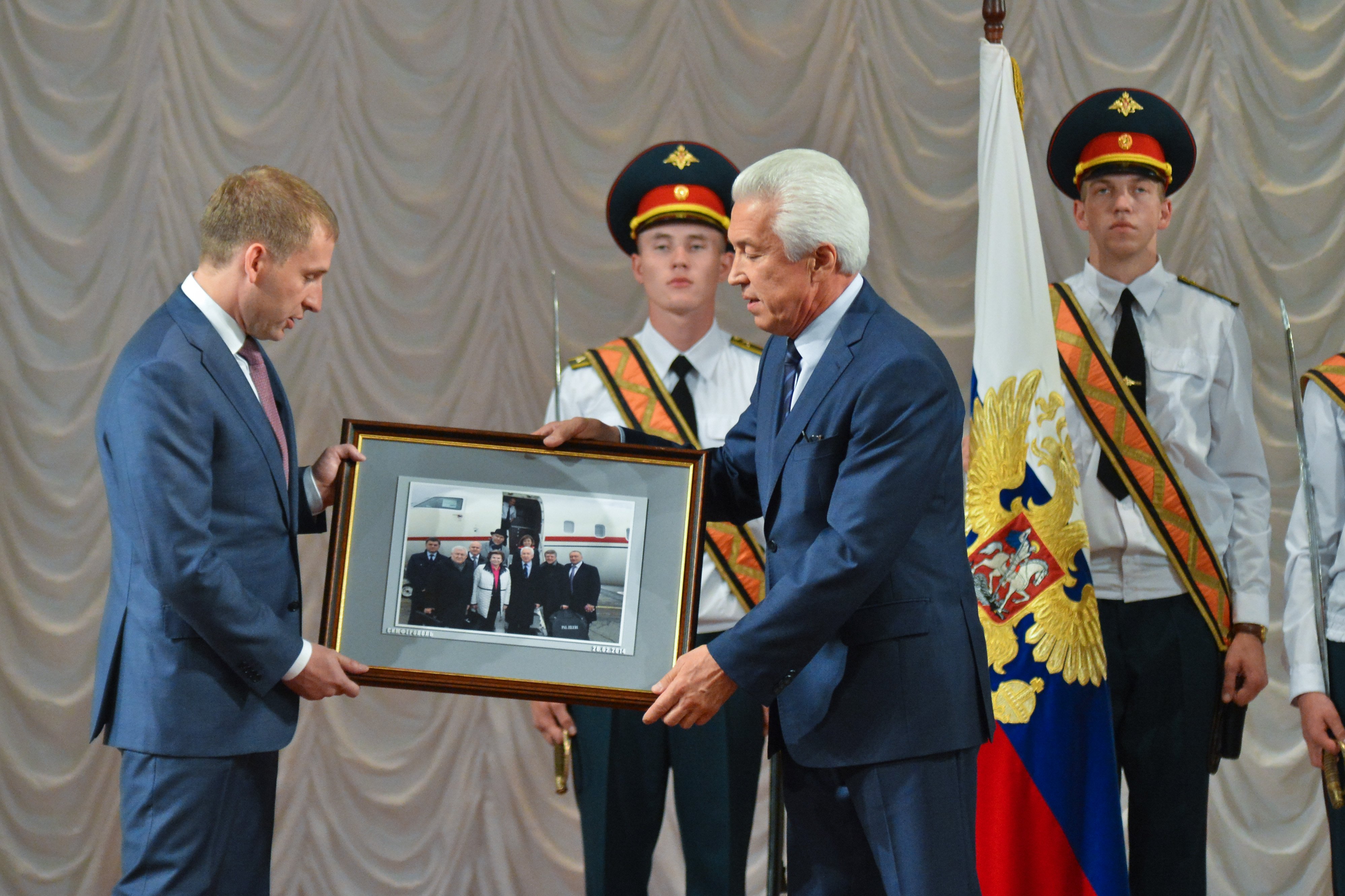 Заместитель полпреда в ДФО Владимир Солодов зачитал поздравление дальневосточного полпреда Юрия Трутнева и аппарата полпредства.
