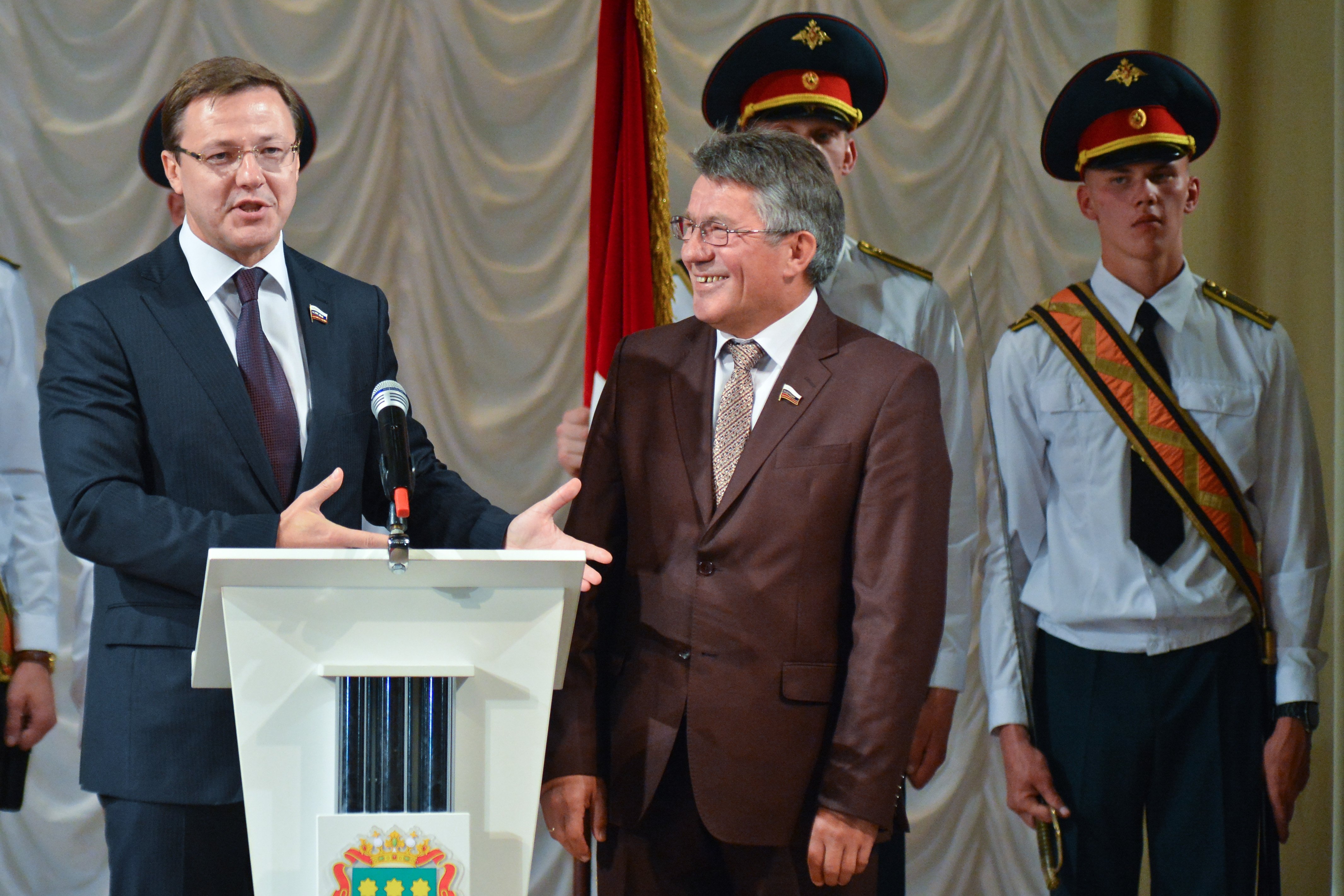 Помимо гостей из Госдумы на торжественную церемонию инаугурацию прибыли трое сенаторов. Вступившего в должность Александра Козлова поздравили председатель комитета Совфеда по федеративному устройству, региональной политике, местному самоуправлению и делам Севера Дмитрий Азаров и председатель комитета Совета Федерации по обороне и безопасности Виктор Озеров. Также на церемонию прибыл амурский сенатор Юрий Кушнарь. После того, как Александр Козлов принял присягу, почетные гости поднялись на сцену и дали новому губернатору свои напутствия.