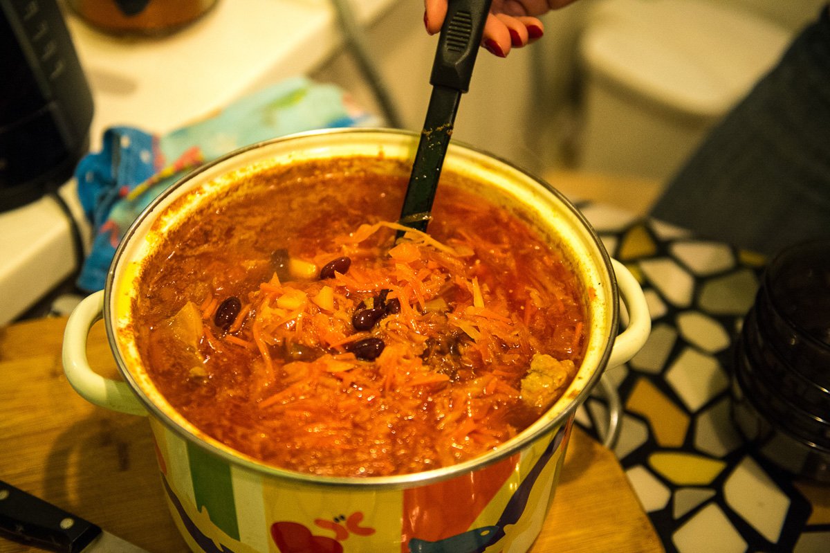 «Это вы от голода такую рубрику придумали?» — пошутили перед началом процесса Алексей и Анастасия. К приготовлению борща они приступили в четыре руки, поэтому работа сразу закипела.