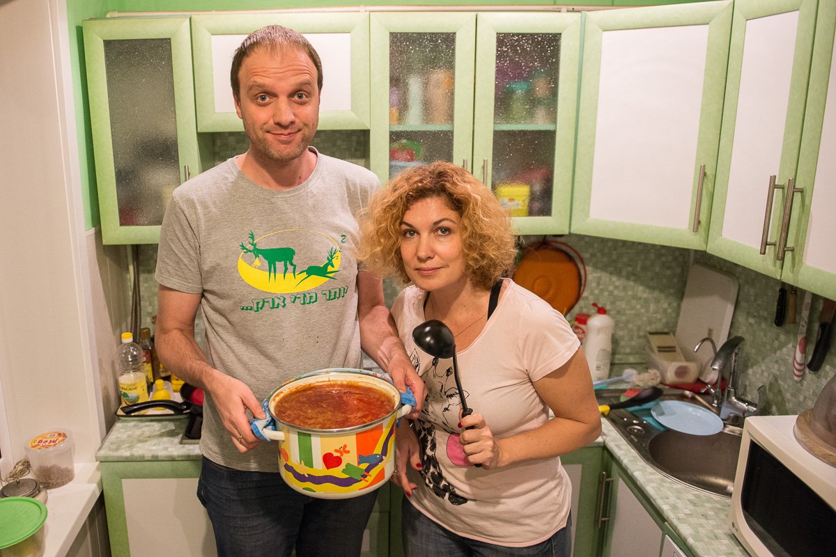 — Мы с Настей познакомились в 1998 году в самолете, который летел в Израиль, — вступил в беседу глава семьи. — Я влюбился в нее сразу! На земле захотел очаровать ее своими кулинарными умениями и сварил борщ. Если честно, то это был первый борщ в моей жизни, причем на невкусной израильской картошке. Неважно, получился он вкусным или нет, важен был сам жест. Уже позже Настя призналась, что борщи не любит, а тогда, конечно, ела, давилась и делала вид, что ей нравится.