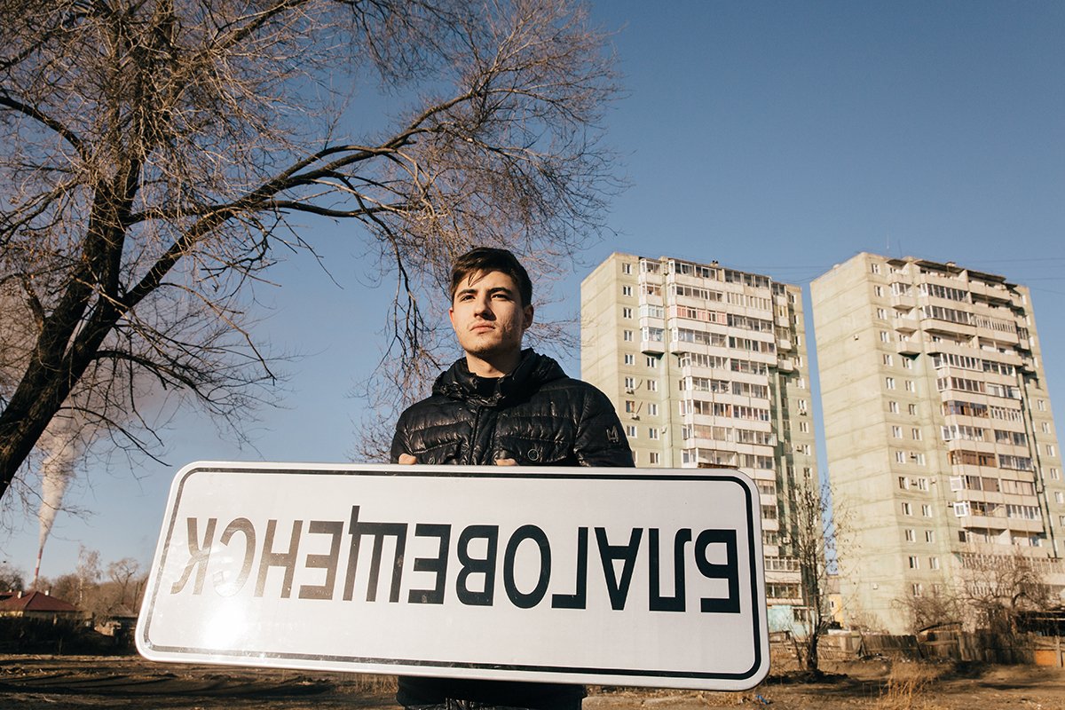 Как и многие идеи, эта тоже возникла случайно. Началось все с того, что Марату на день рождения друзья подарили дорожный знак «Благовещенск».