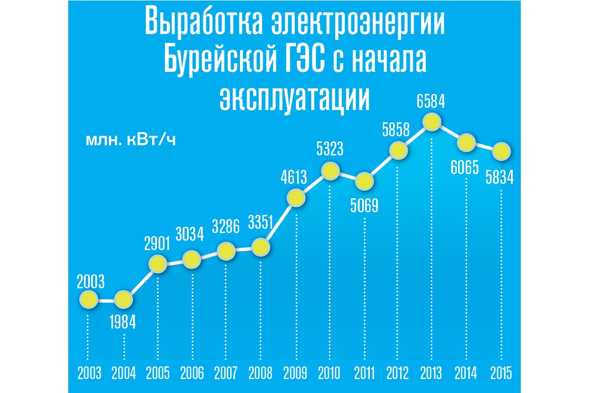 — Средняя проектная выработка Бурейской ГЭС составляет 7,1 миллиарда киловатт-часов. В 2015 году мы планируем выработать 5,8 миллиарда. Это говорит о том, что на нашей ГЭС есть резерв мощности, — рассказал Александр Сергеевич. — Поэтому, все проекты, которые будут реализовываться на территории Амурской области в рамках развития Дальнего Востока, могут быть обеспечены электроэнергией. Речь идет о строительстве космодрома Восточный, газоперерабатывающего и газохимического заводов и других промышленных объектов. Радует, что правильно принятые решения по строительству генерирующих станций позволяют развивать промышленный потенциал Амурской области. Это в свою очередь даст новые рабочие места, налоги и развитие региона.