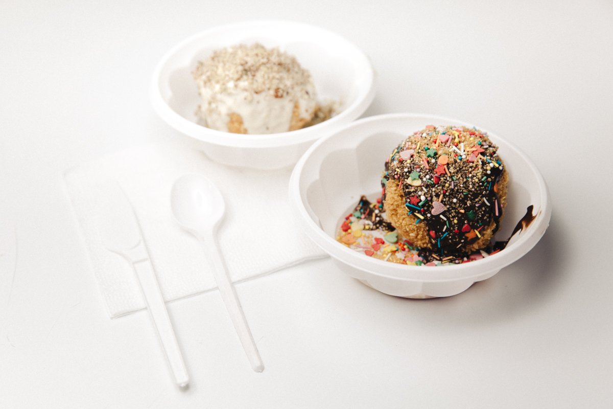 — Снаружи оно горячее, хрустящее, внутри три миллиметра подтаявшего мороженого и дальше ледяной пломбир, — вкусно рассказывает бизнесмен. — А еще сверху я поливаю шарик горячим шоколадом.