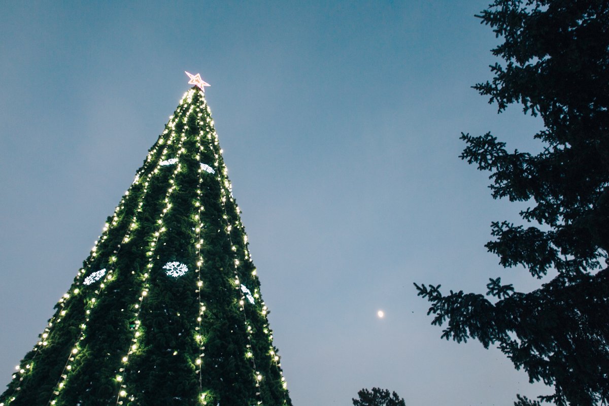 На главной новогодней елке в этом году сияют 2 500 фонариков. «Белый свет лампочек хорошо сочетается со светодиодным светом 36 снежинок, которыми также украшена 20-метровая ель», — рассказал директор подразделения по обслуживанию и эксплуатации сетей наружного освещения МП «ГСТК» Юрий Грошев.
