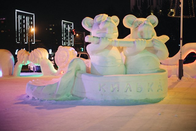 Всего на площади Ленина и прилегающих аллеях установлено 36 фигур из снега и льда по мотивам отечественных мультфильмов — 11 снежных и 25 ледовых.