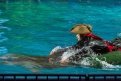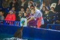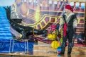 Особых оваций заслужил и котик Рокки – кроме того, что он украл фляжку Джека Воробья и ключи от сундука Дэви Джонса, он покорил публику танцами в стиле «брейк» и игрой в мяч. А когда он встал на одну ласту – маленькие зрители от восторга ринулись к бассейну.