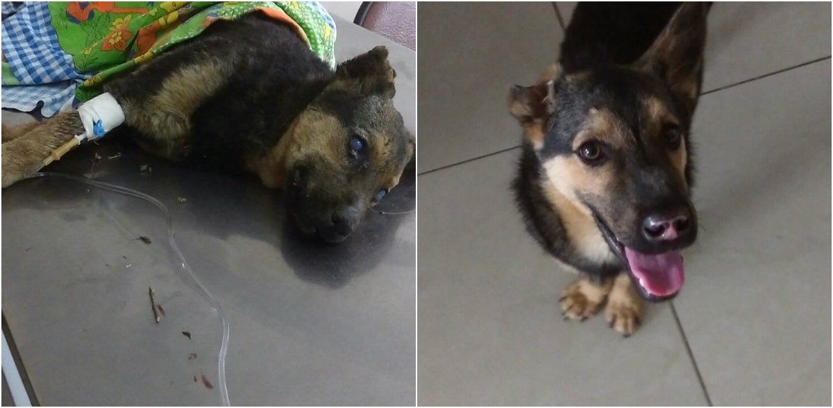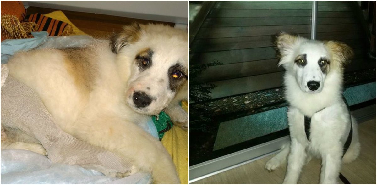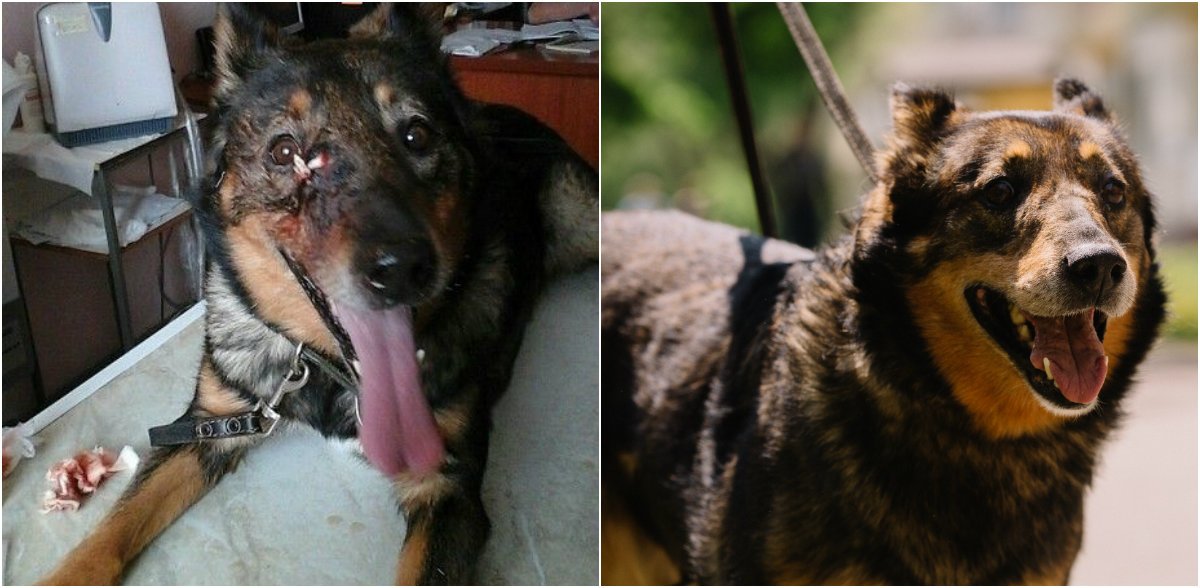 Вольт получил разряд током в трансформаторной будке, полгода лечили термические ожоги тела и глаз. После лечения пес нашел свою семью.