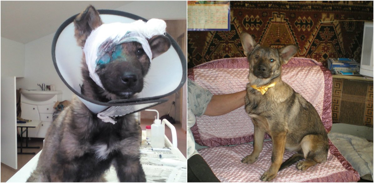 Ладу нашли в канаве возле ветеринарного кабинета с выбитым глазом. После удаления ока собаку вылечили, простерилизовали, и она обрела свой дом.