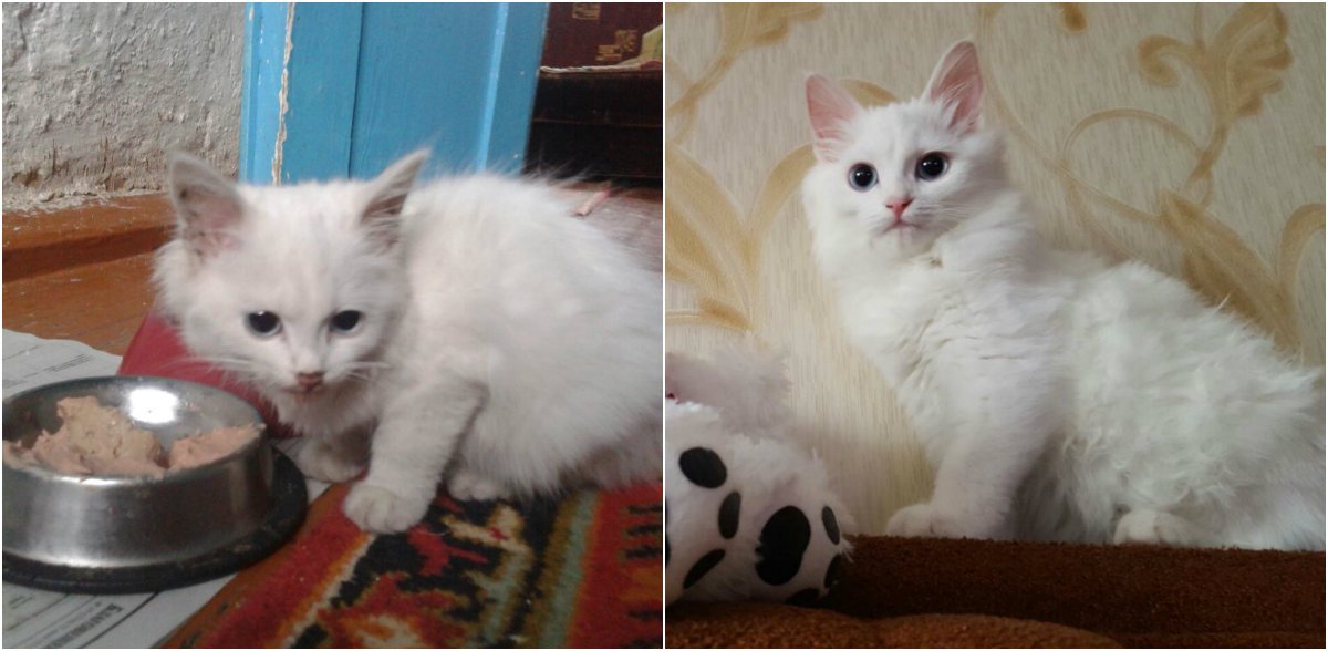 Снежинку заметили на большой дороге в дождливый день. Врожденная глухота не помешала ей стать любимицей в семье.