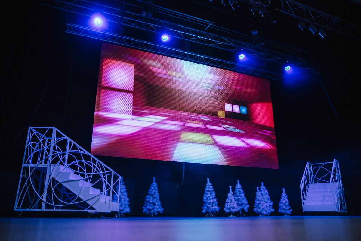 Появился в зале и новый современный LED-экран размером 6 х 7 метров. Такого оборудования до этого дня не было в Амурской области.