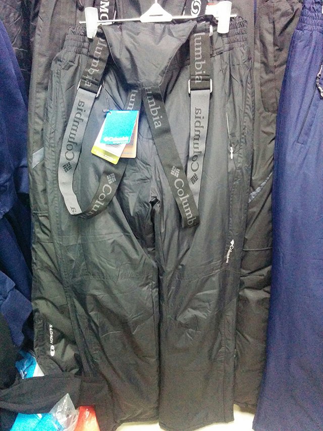 Кроме спортивных и специализированных магазинов одежды, утепленные брюки предлагают и торговцы из Китая. На их прилавках можно найти штаны с лейблом на любой вкус — будь то «широко известная китайская марка» или «Columbia». Свой товар продавцы предлагают за 1500—2200 рублей, но при этом охотно торгуются. Большинство моделей не могут похвастаться мембраной. Отдельные экземпляры оснащены подтяжками, манжетами, защищающими от снега, подкладом из флиса, регулируемым поясом, а также имеют крой, не сковывающий движение. Правда, полное сочетание этих достоинств в одной модели найти можно крайне редко.