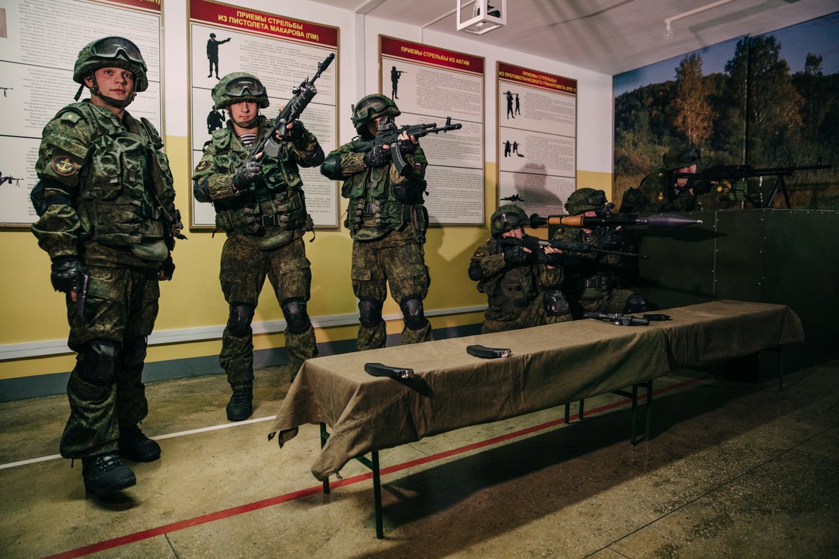 В прошлом году училище получило на вооружение 54 тренажера. Среди них особая гордость — комплекс «Вега» — учебный электронный 3D-тренажер для стрелкового оружия и средств ближнего боя. Он создает полную имитацию реальной стрельбы. Более того, имитаторы оружия на 70 процентов создают эффект отдачи при стрельбе.