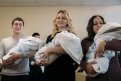 Когда в комнату вынесли три голубых свертка, то у растроганной мамы не хватило рук, чтобы взять сразу всех сыновей. На помощь пришел папа и многочисленные родственники. Крохотные мальчишки благополучно проспали торжественную церемонию в их честь.