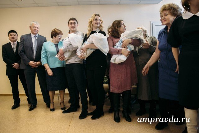 — Сто лет назад наша область славилась, что у нас на 30 процентов больше мужчин, — привела интересную статистику Наталья Сергеевна. — Рождение сразу трех мальчиков в одной семье в 2015 году — толчок к тому, что в будущем красивые амурские женщины не будут жаловаться на нехватку мужского плеча. Три ваших богатыря пополнят нашу красивую мужскую армию. Хочется отдельно обратиться к маме. Управлять четырьмя мужчинами будет непросто. Пусть они вас любят, лелеют и берегут, а вы их кормите хорошо!