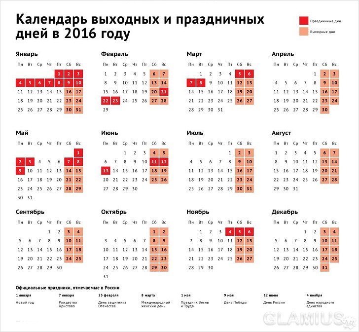 В целом 2016 год принесет россиянам 119 праздничных и выходных дней. Амурчан ждет долгий отдых на майские праздники, на День России – с 11 по 13 июня, День народного единства, 4 ноября.