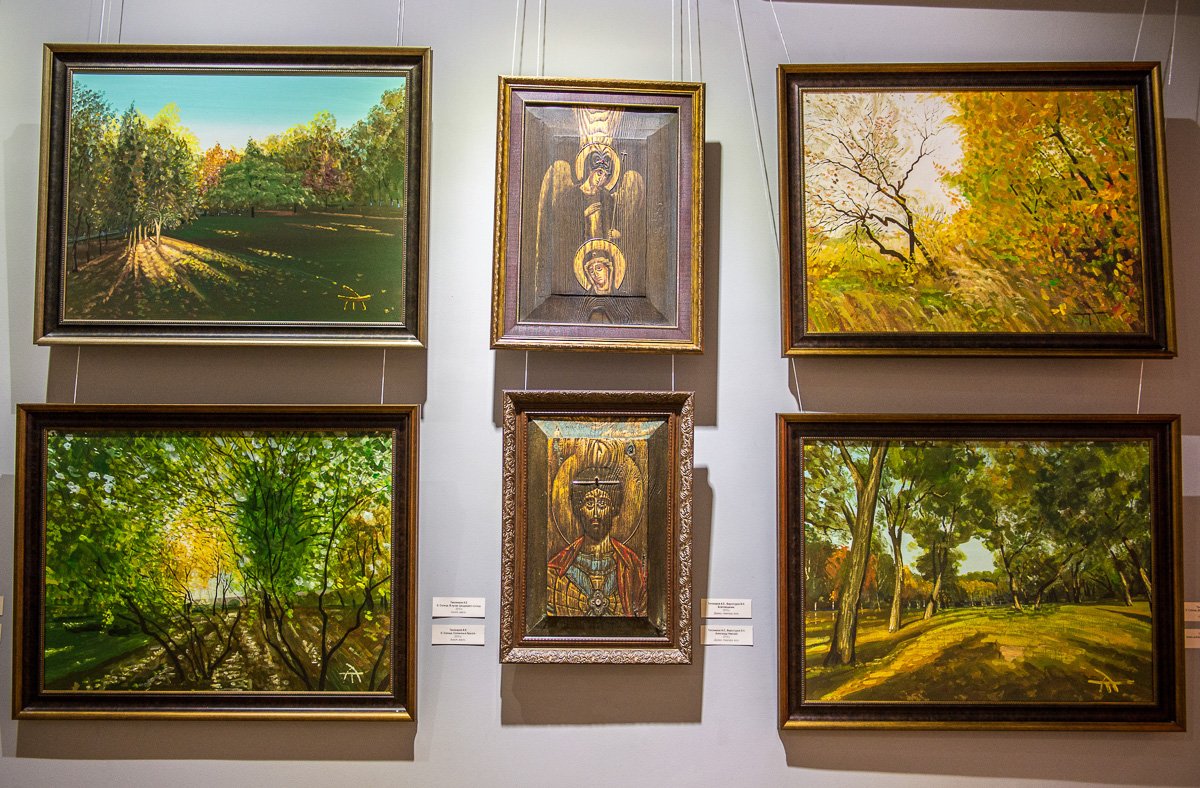 Маслом по холсту художник не писал десятилетиями, хотя ценители гонялись за каждой его живописной картиной. «Я считал это предательством оконописи, ведь она на века, это душа, сохранение наследия. А потом вдруг я почувствовал, что можно писать пейзаж не просто, как делал раньше, а искать бога в им созданном мире», — признается юбиляр.