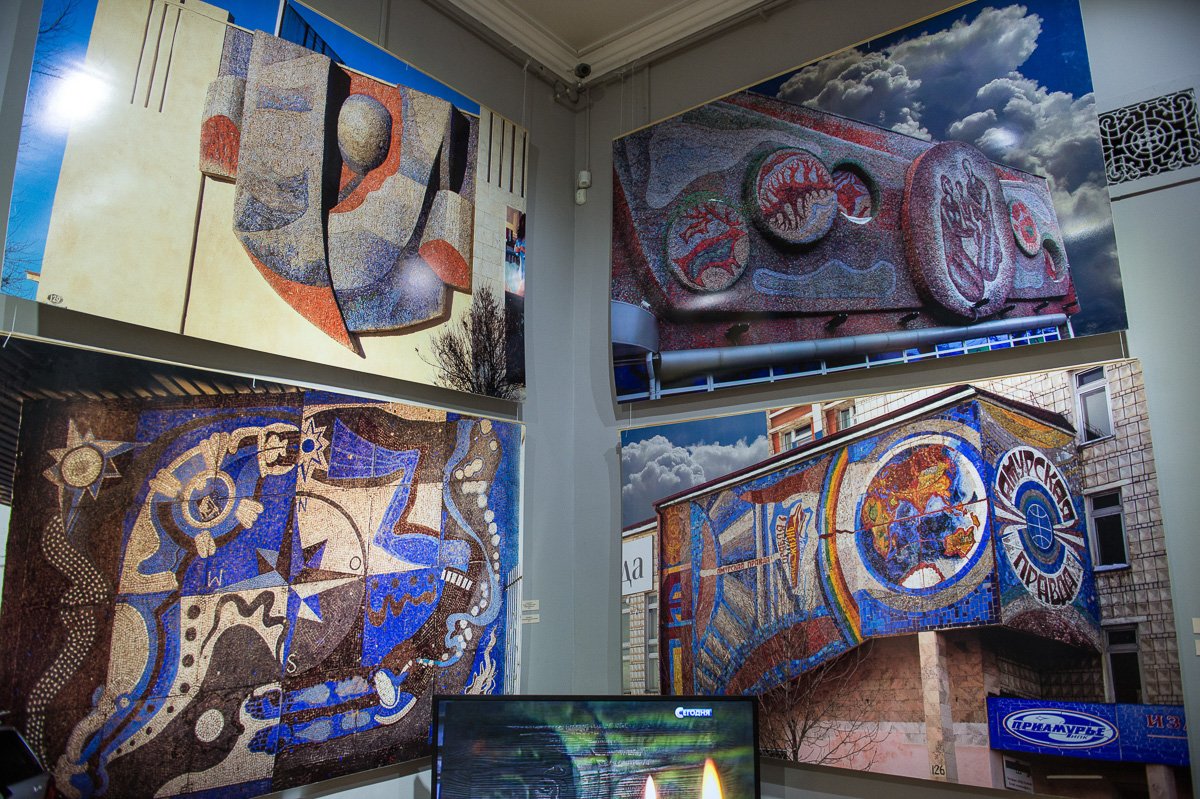 Часть выставки занимают фотографии мозаик, выполненных на фасадах благовещенских зданий. Дом быта «Элегант», внутренний двор ДОСААФ, ИПК Приамурье (здание, построенное для «Амурской правды»), ДК профсоюзов — все они выполнены Александром Евгеньевичем в начале 1980-х годов.