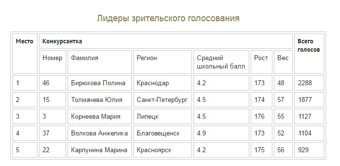 Благовещенка Анжелика Волкова под номером 37 набрала 1 104 положительных отзыва, за школьницу из Свободного Кристину Луговскую (ее номер 39) отдали 664 голоса. По результатам конкурса интернет-симпатий участницам будут начислены баллы как за первый этап соревнований.