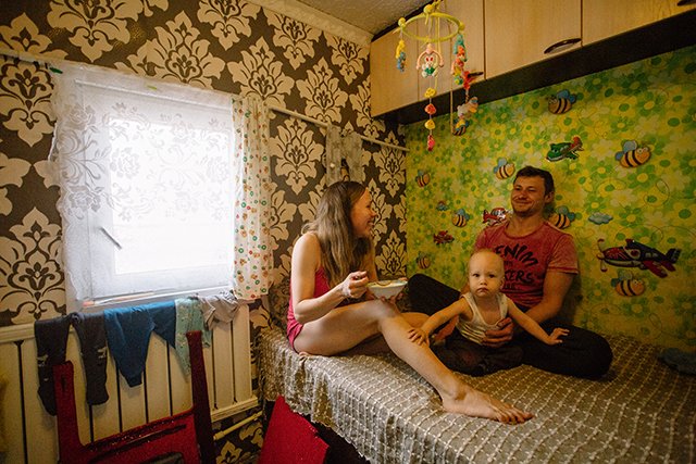 Семья воздушных гимнастов — Татьяна, Константин и маленький Кирилл — живут в крохотной комнатке. Здесь есть все необходимое — диван, телевизор и плитка. «Жизнь на гастролях, в разъездах интереснее, чем дома», — поделились артисты.